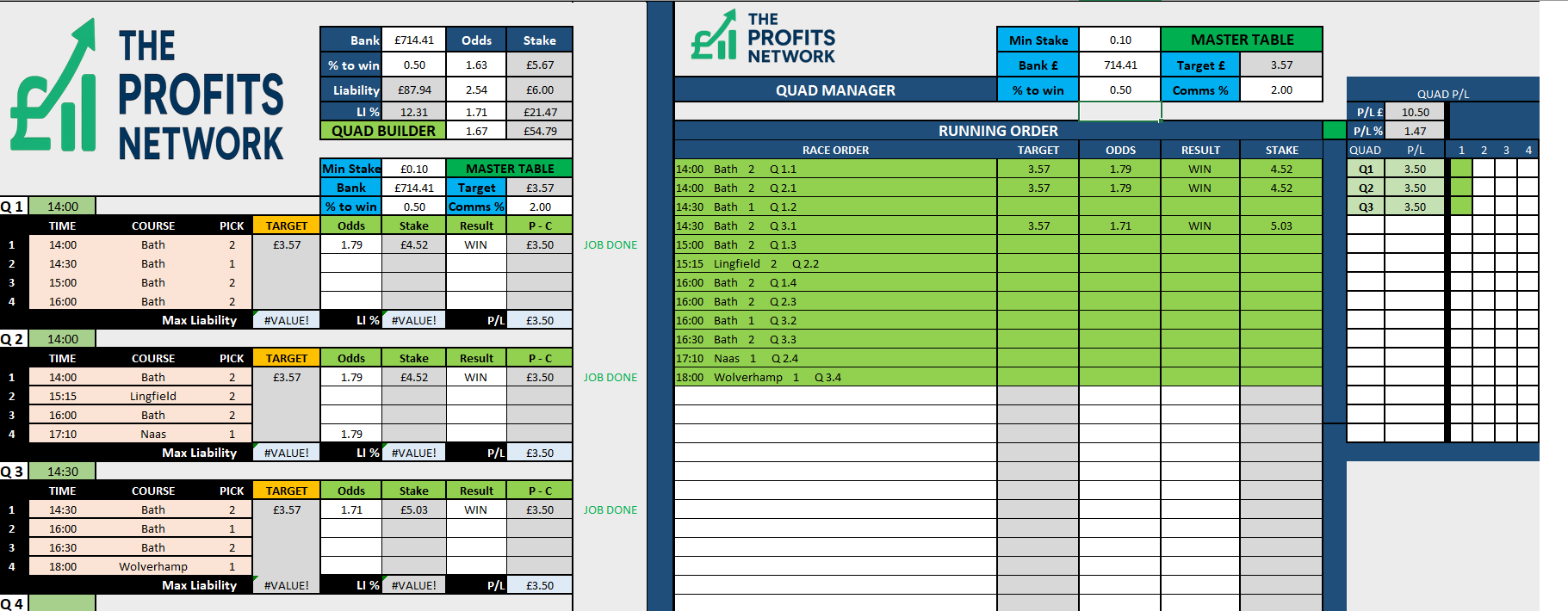 Quad Sequencing bets and results will be back for next Tuesday, 9th September.