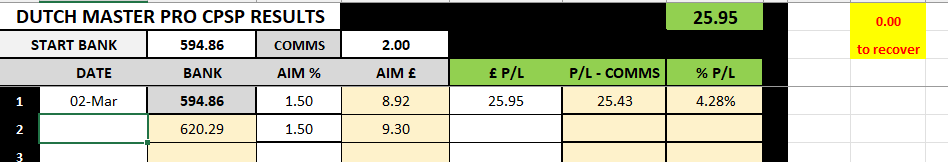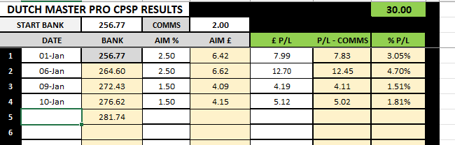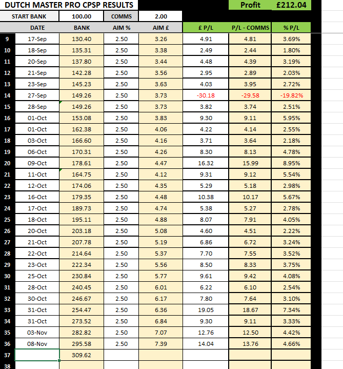 Dutch Master Pro bets and results will be back for next Tuesday 9th September.