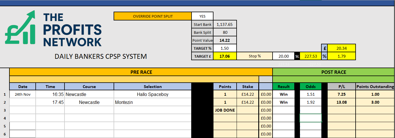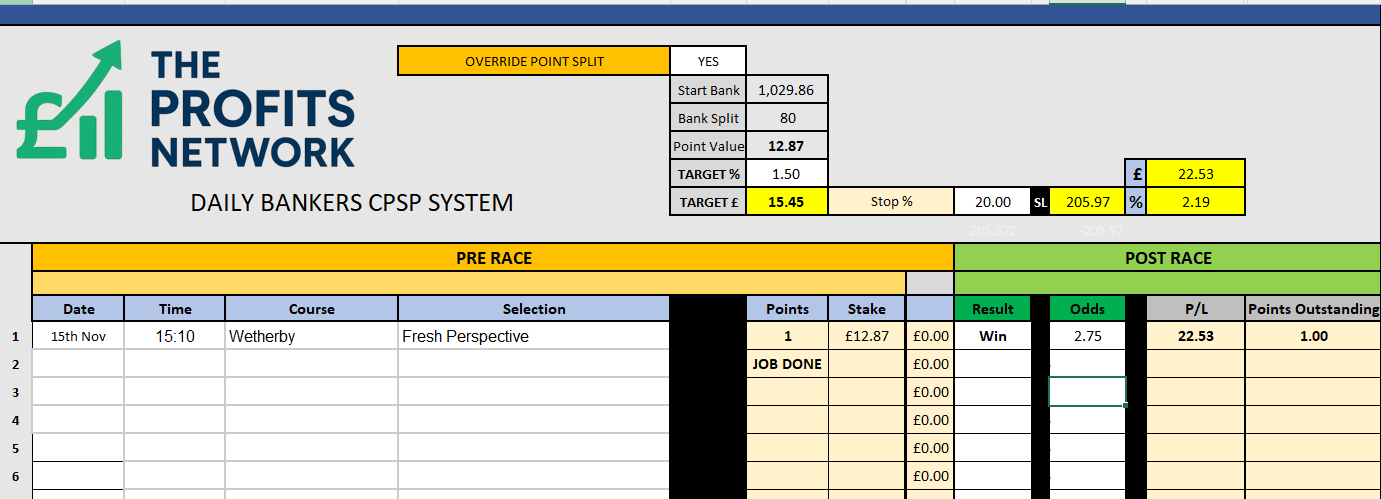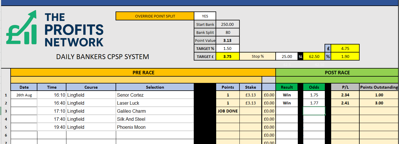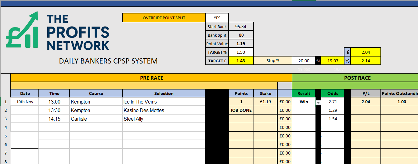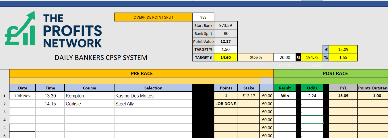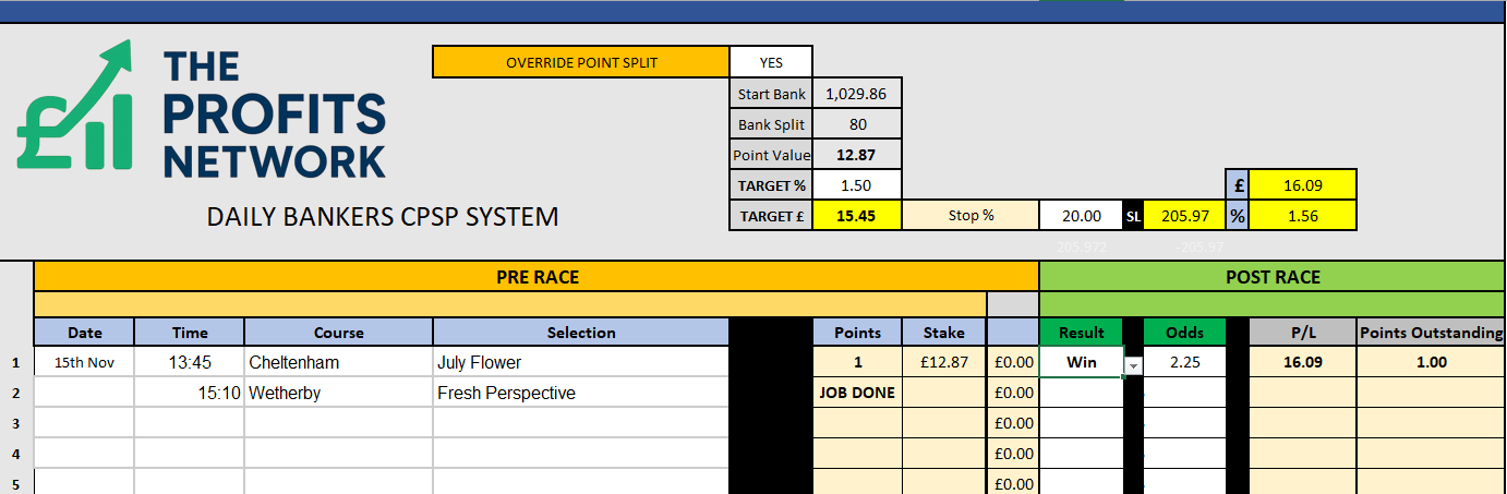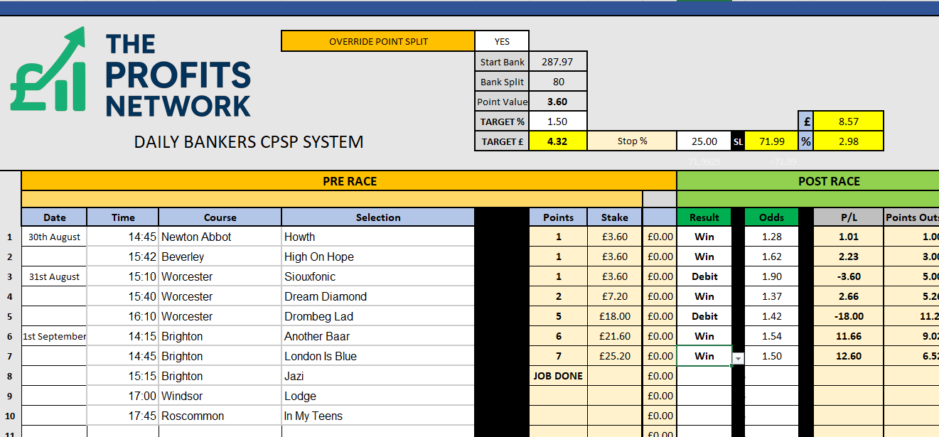 • Profit Today: £ series still live (should get the Job Done on Bet 1 today)