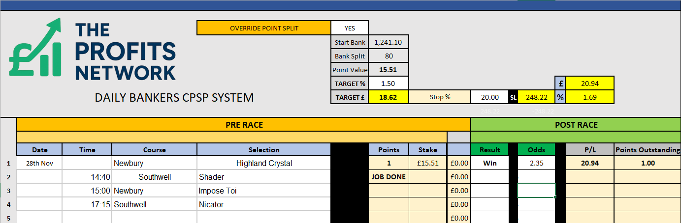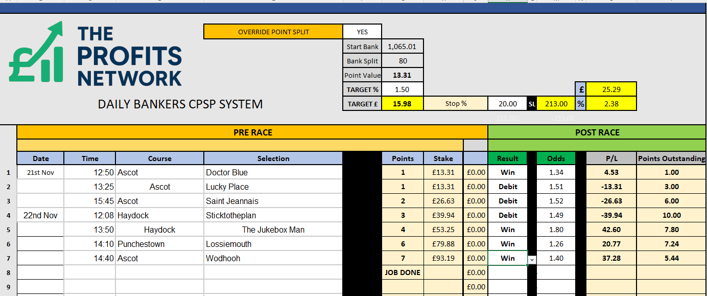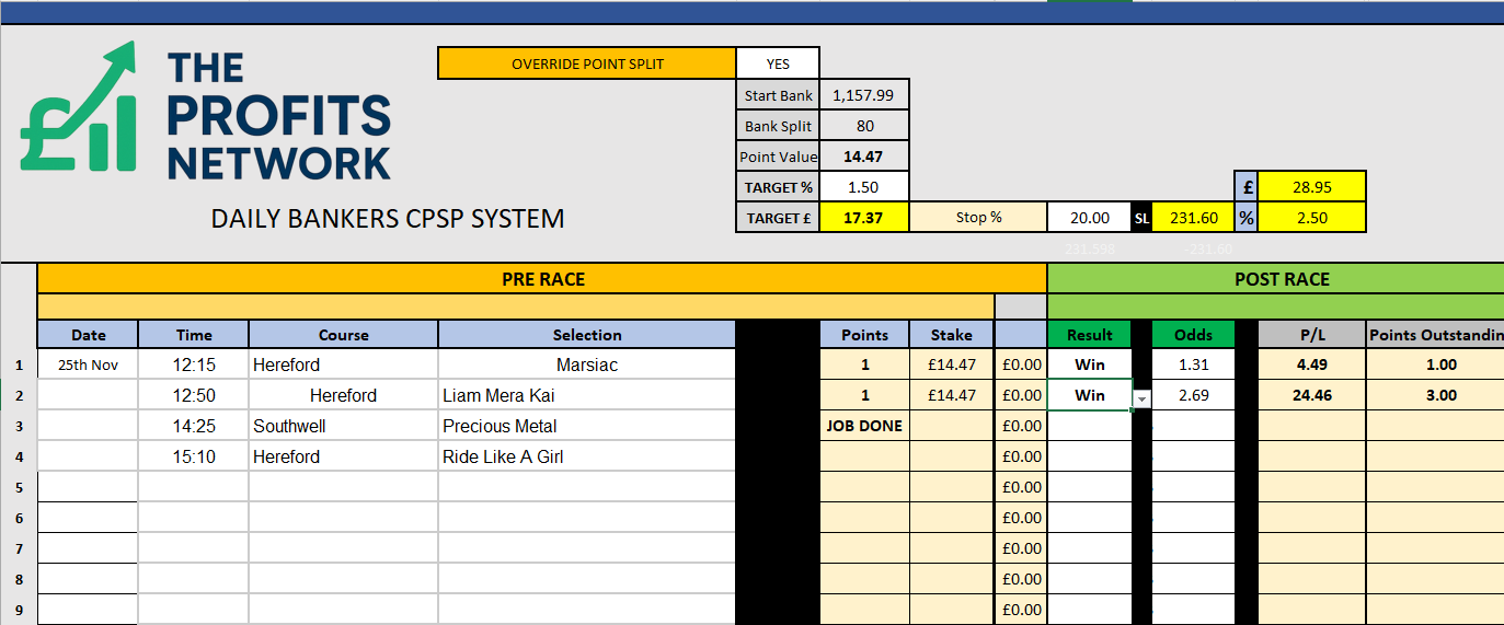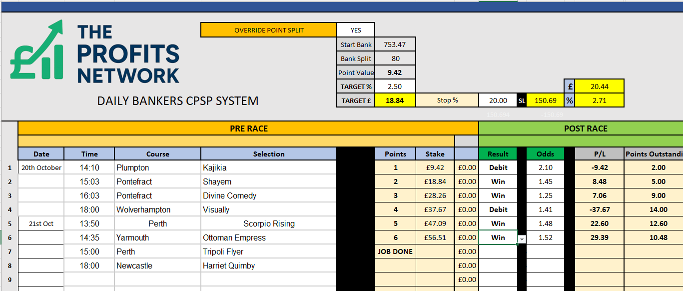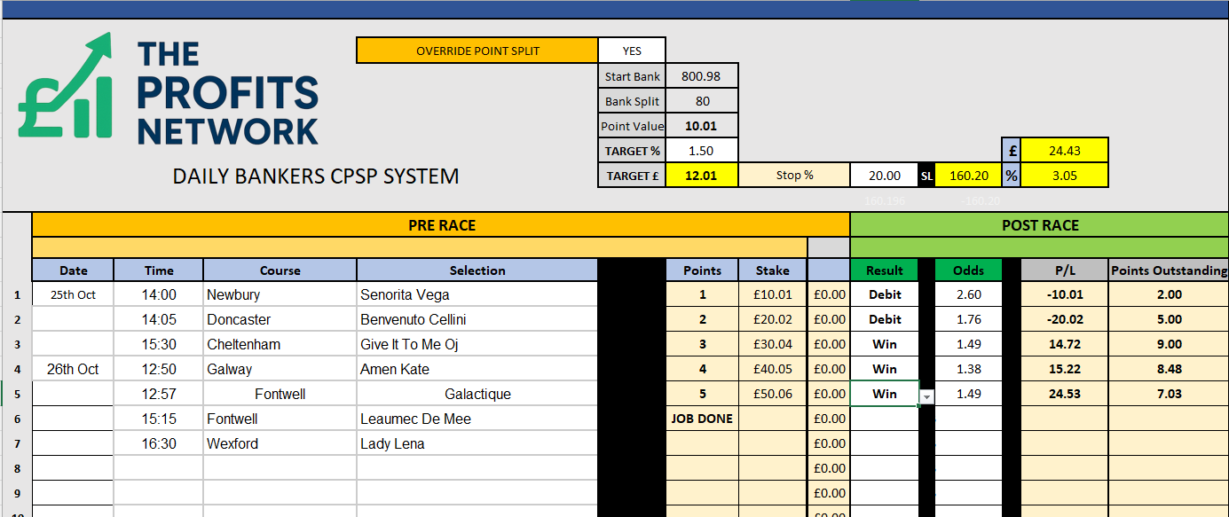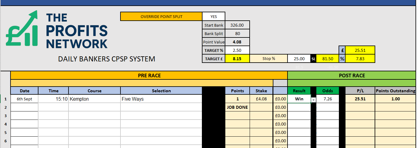 • Profit Today: £ series still live (should get the Job Done on Bet 1 today)