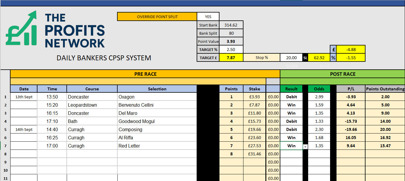If you want to minimise your betting action – Platinum staking in the Daily Banker Platinum post IS stopping at a pre-determined daily profit.