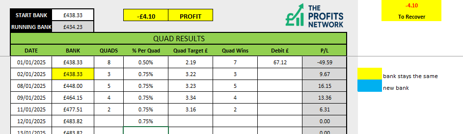 The message of Quad Sequencing is very clear, it is a successful and profitable way to harness the power of probability when backing favourites to win. Or any other qualifying group of selections come to that. Following the rare days when it fails, it will succeed on the next day 96% of the time.