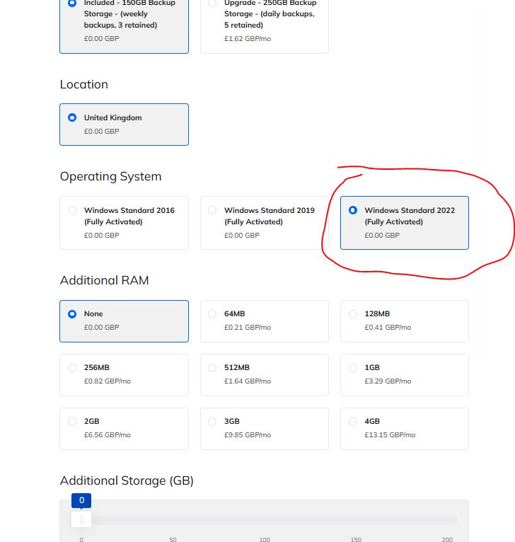 Then next page is configure….all you need to change is Operating System….scroll down and Choose “Windows Standard 2022”